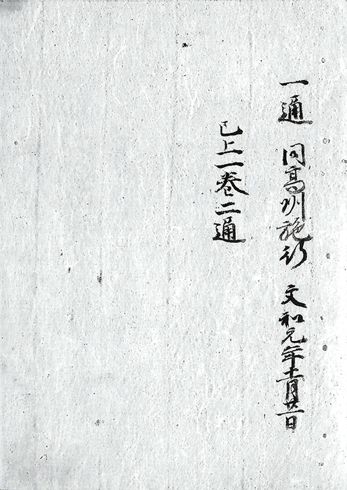 一久原・大穂・嘉摩郡河崎文書 一通 義詮御下文 〈文和元年十一月廿二日〉 但勲功之賞在之。 一通 同高〔予脱〕州施行 〈文和元年十一月廿一〔二〕日〉 已上一巻二通
