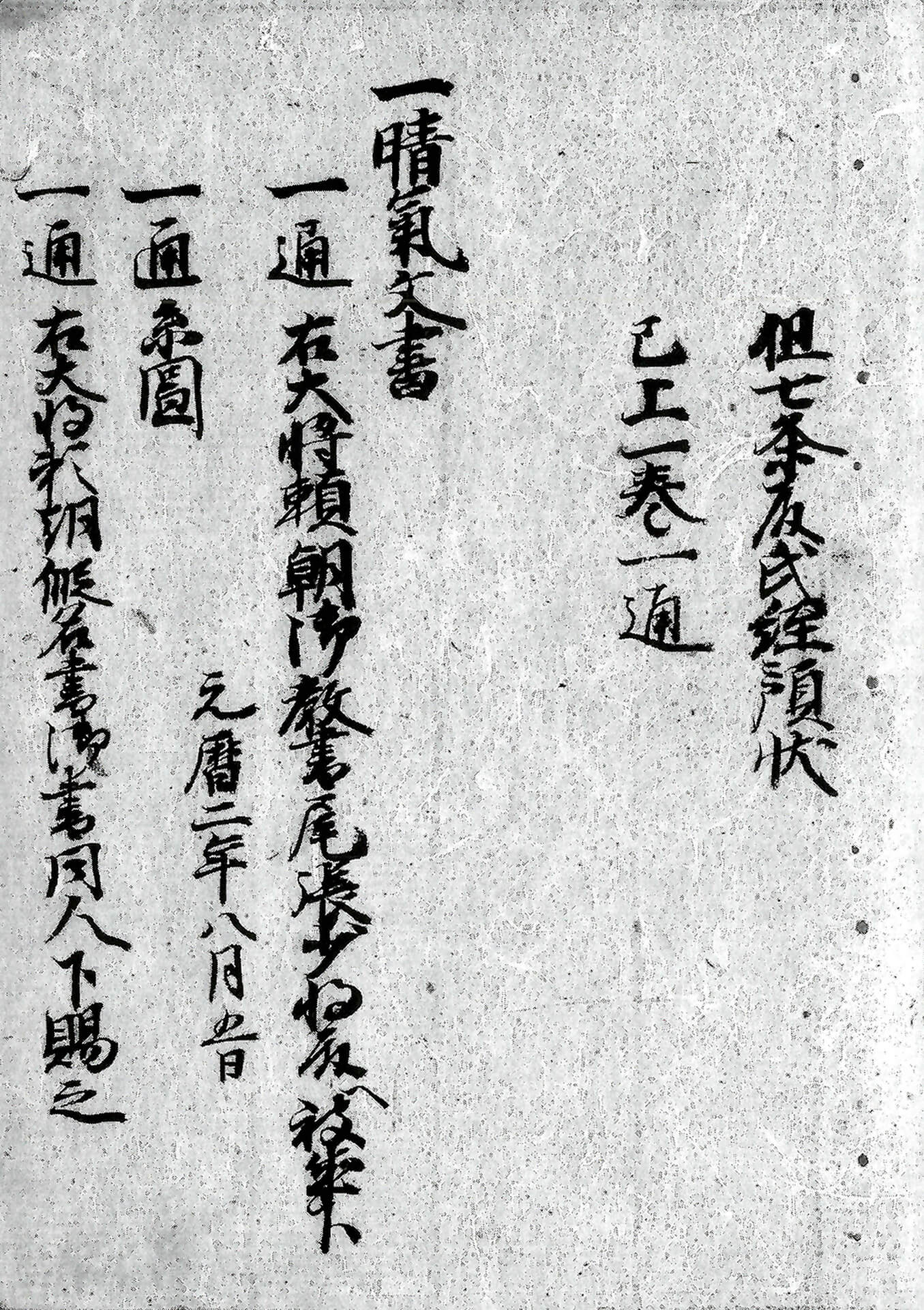 一赤馬領家方文書 一通 為兵粮料所修理大夫殿預状 〈貞治二年十月廿日〉 但七条殿氏経預状 已上一巻一通 |